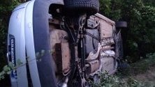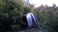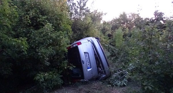 На пътя излезли два коня, водачът успял да ги избегне с маневра на дясно, но излязъл от пътя, преобърнал се няколко пъти и спрял на лявата си странична страна.