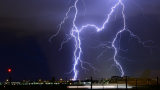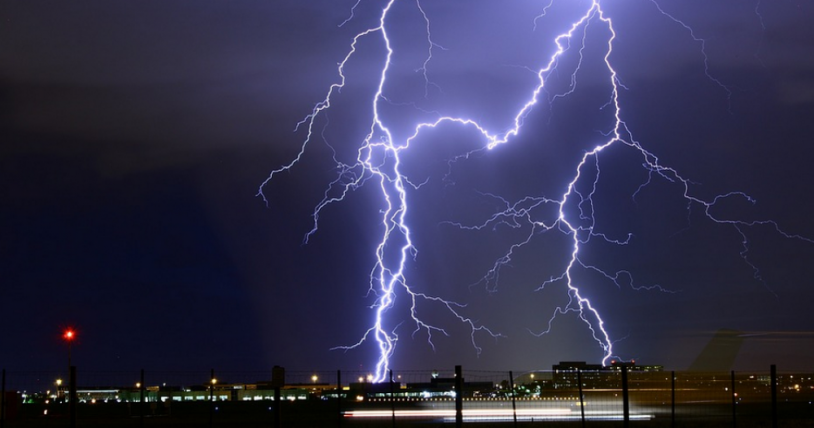 Камери за видеонаблюдение заснеха мълния, която удари мъж по време на силна гръмотевична буря.