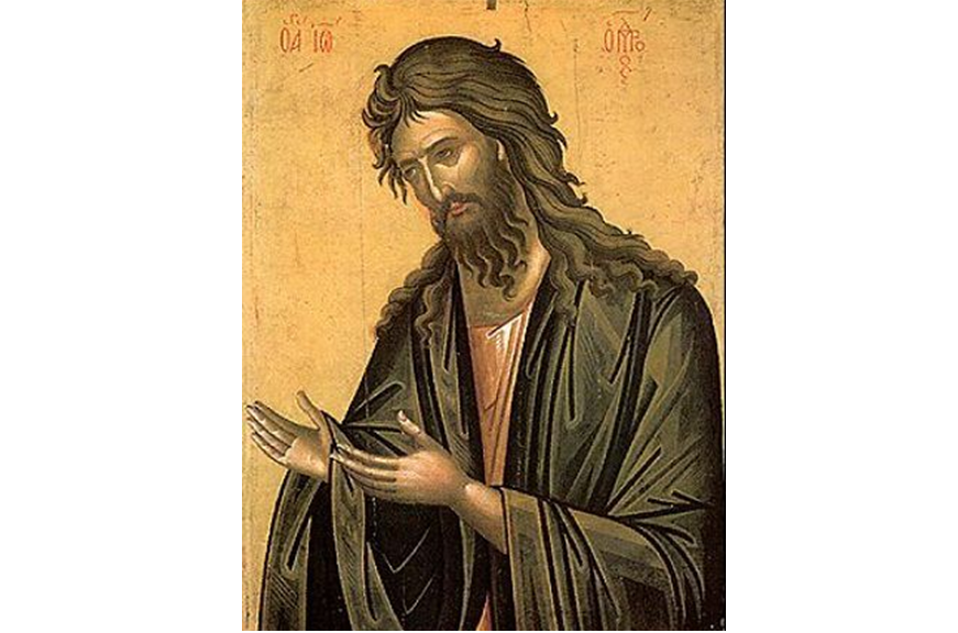 Йоан Кръстител се ражда половин година преди Иисус Христос. Според Евангелието Йоан води аскетичен живот на бреговете на река Йордан, носи груби одежди от камилска вълна и се храни с див мед и скакалци.