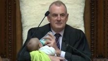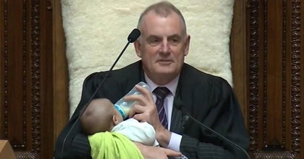 Председателят на парламента на Нова Зеландия Тревър Малард не се поколеба да нахрани бебе на депутат по време на разпалени дебати за цените на горивата.