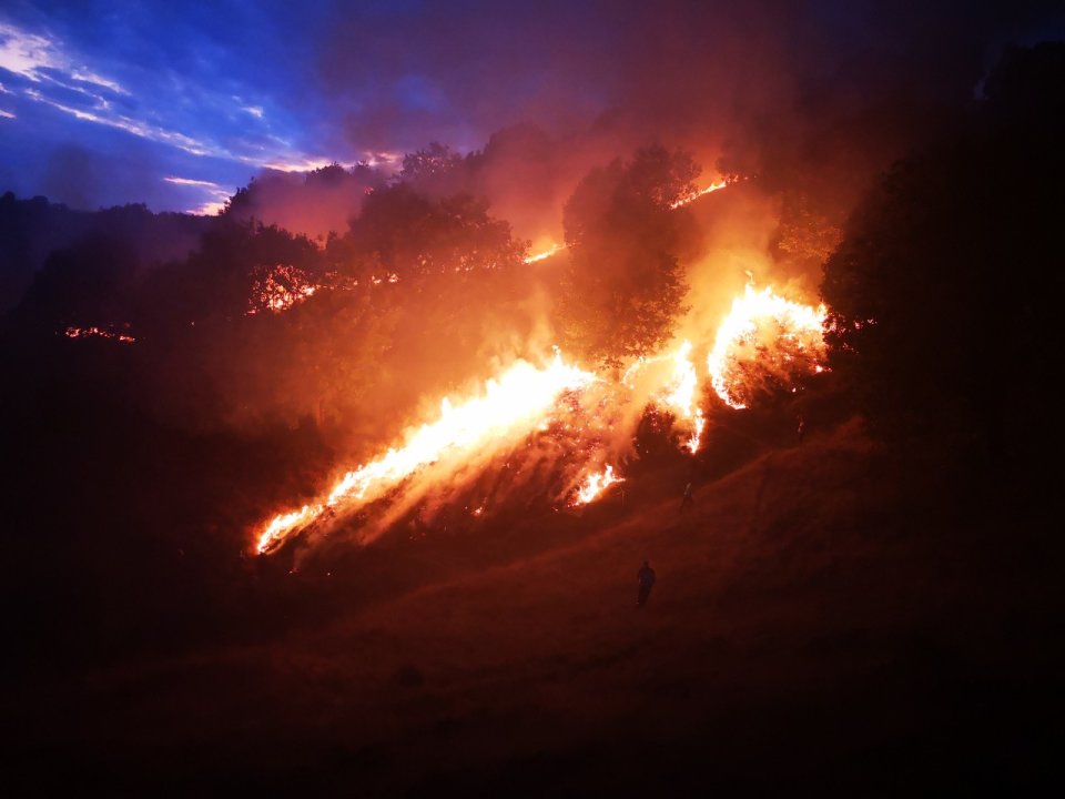 Голяма площ треви между селата Ягодово и Крумово в община Родопи е обхваната от пламъци. Огнената стихия е достигнала и до фургон, както и лозов масив. Четири екипа на пловдивската пожарна са на място, съобщи дежурният в пожарната, предаде DarikNews.bg