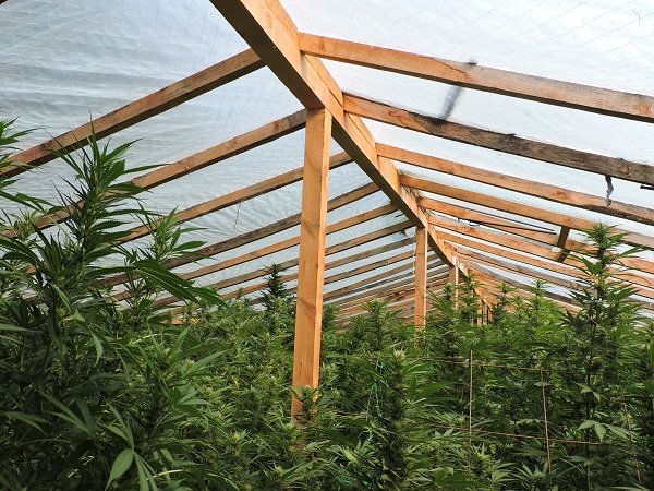 В имота полицаите са се натъкнали на инсталация и солидна оранжерия от дървена конструкция, покрита с полиетилен и мрежа от всичките страни. При проверка в нея се установени 46 растения от рода на конопа с различна височина, варираща от 160 см до 240 см. Всяко едно растение е било обградено от метална скара и с изградена вентилация и капково-поливна система, свързана с геран извън имота.