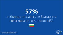 57% от българите смятат, че сме спечелили от членството в ЕС, сочат данните от проучване на Евробарометър, разпространени от пресслужбата на Европейския парламент.