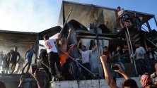 Според Атинската информационна агенция AMNA в лагера има силно напрежение и жителите на лагера са нападнали пожарникари. Все още не е установено какво точно се е случило.