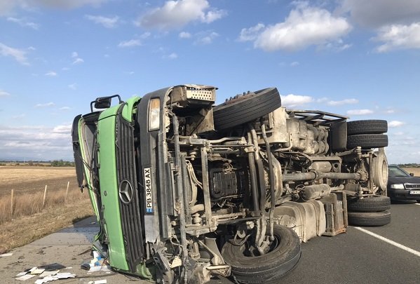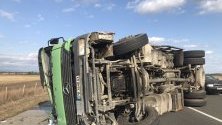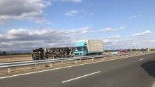 Камион, превозващ прасета, се преобърна на км 224 на АМ „Тракия” в посока София в района на с. Пшеничево, съобщи bTV.