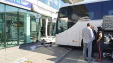 Междуградски автобус се е блъснал в стъклените стени на чакалнята на автогара "Сердика" в София.