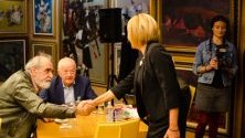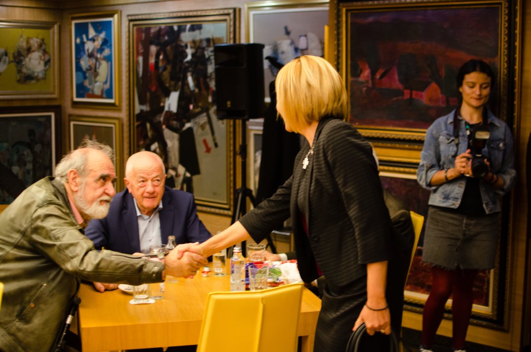 „Ние, членовете на Съюза на българските писатели съществуваме въпреки Столичната община. Пет години съм председател на съюза и не съм почувствал по никакъв начин тя да подпомогне българския писател. А ако го прави, го прави избирателно. Българската литература обаче е жива и ще продължи да съществува въпреки Столичната община. Но аз много се надявам, че като станете кмет, това ще се промени“, каза председателят на Съюза на българските писатели проф. Боян Ангелов.