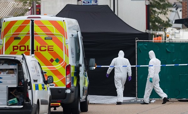 В индустриална зона беше открит камион с 39 тела - на 38 възрастни и 1 тийнейджър. Арестуван е шофьорът на камиона - 25-годишен мъж от Северна Ирландия.