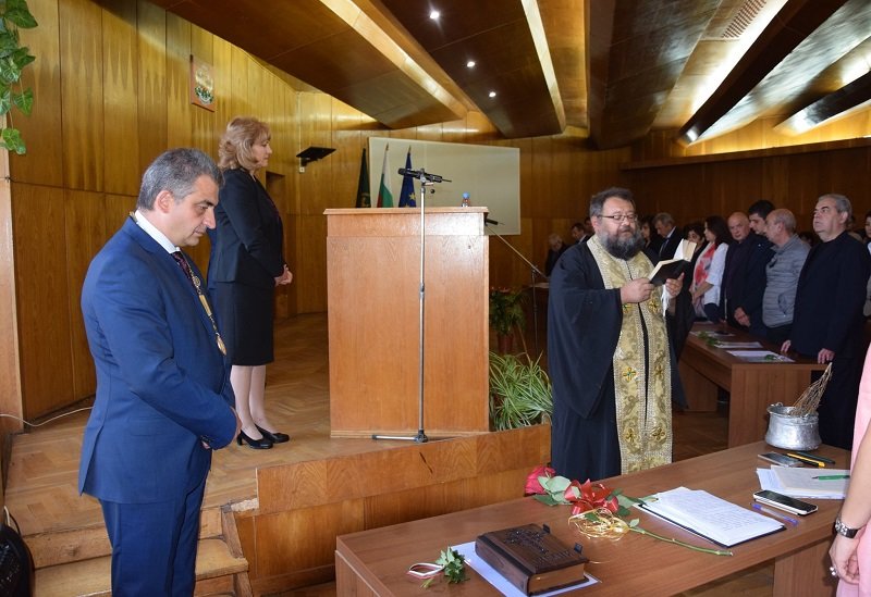 Новият стар градоначалник инж. Млъзев с ръка върху Библията се закле да спазва законите и Конституцията на страната и да защитава интересите на гражданите от община Елена. Заместник-кметът Йордан Димитров тържествено му връчи огърлицата на кмета – символ на местната власт.
