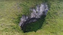 Експедиция, изследваща гигантско свличане на земни маси в горите в Китай, откри огромен пещерен комплекс под земята.