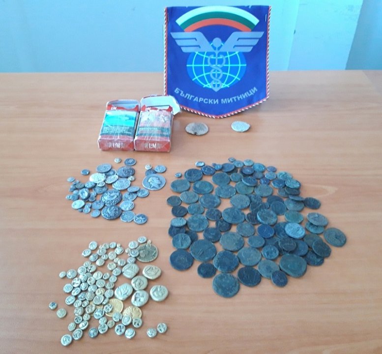 В камиона не е открито нищо нередно. При обиска на шофьора обаче служителите намират две кутии цигари, облепени с прозрачно тиксо. Вместо цигари вътре има 220 старинни монети.
