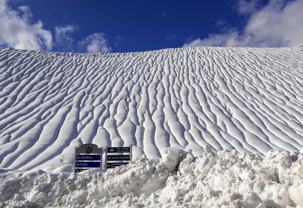 Интересен феномен в Австрийските Алпи. Комбинацията от дълбок сняг и дъжд изрисуваха сюреалистични картини по склоновете на планината. Снимките станаха хит в социалните мрежи.