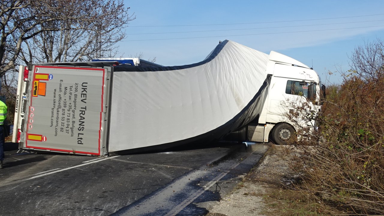 Товарен автомобил МАН с благоевградска регистрация се обърна на главния път Е-79 край Дупница, съобщава БГНЕС.