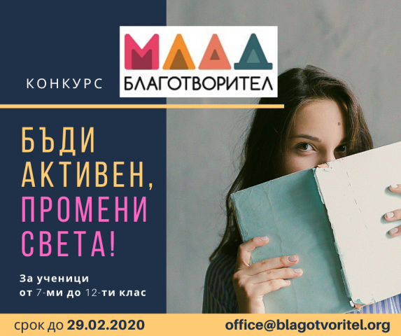 Фондация „Благотворител“ стартира конкурс за благотворителни проекти за ученици от 7-ми до 12-ти клас. Кандидатите могат да бъдат от цялата страна.