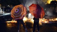 До сблъсъците се стигна, след като участници в протестите започнаха да хвърлят камъни и метални пръчки по полицейския кордон. След това се опитаха да съборят огражденията. Полицаите, на свой ред, използваха сълзотворен газ и водни оръдия.