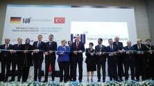 Меркел е на работно посещение в Истанбул, където двамата с Ердоган откриха турско-германски университет.