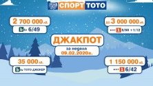 Ако заложите на последното поверие, от СПОРТ ТОТО дават много шансове да напълните портфейлите си още тази неделя. В следващия тираж на игрите ви очакват джакпоти на обща стойност 7 100 000 лв. Натрупаната сума в любимата на много българи цифрова игра - „ТОТО 2 – 6/49“ е 2 700 000 лв., а пък 1 150 000 лв. могат да скочат в портфейла ви, ако пуснете фиш за „ТОТО 2 – 6/42“. От „ТОТО 2 – ЗОДИАК“ може да спечелите до 3 000 000 лв.