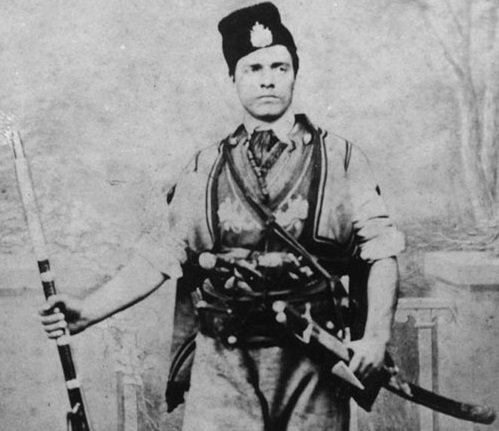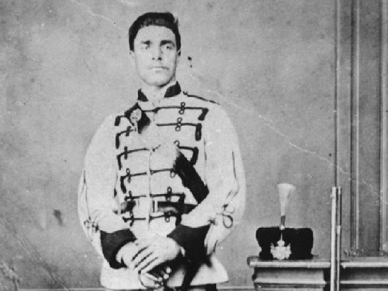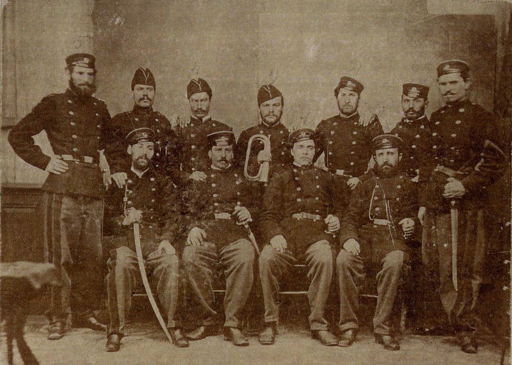 Снимка: Wikipedia/ Васил Левски (вторият седнал от дясно наляво) сред другари от Втората българска легия в Белград, 1868 г.