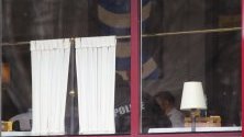 Служител, оборудван с уред и слушалки, внимателно обхожда ресторанта, най-вероятно в търсене на подслушвателни устройства. По непотвърдена информация в ресторанта има укрити документи, предава БГНЕС..