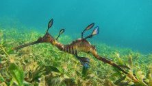 Аквариумът в Южна Калифорния успешно развъжда редкия тревен морски дракон, по-малко известният братовчед на морските кончета, който прилича на морско водорасло при плаване.