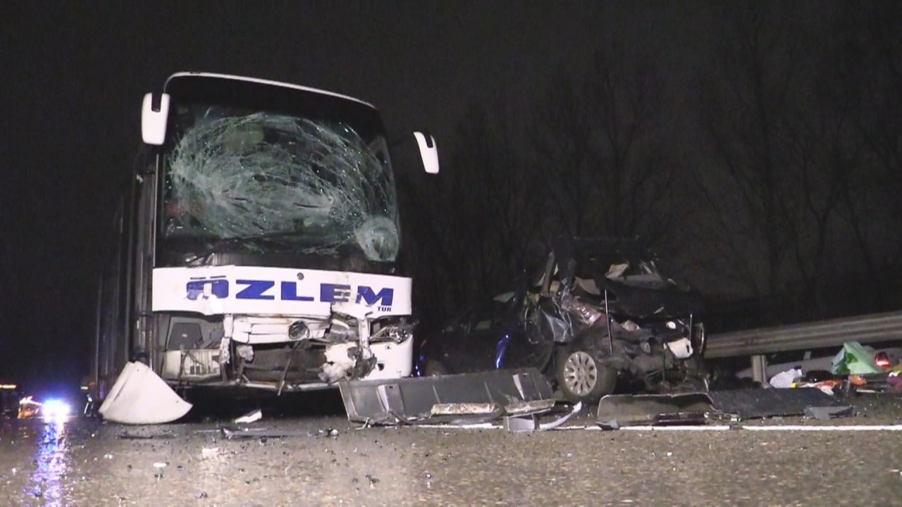 Първоначално катастрофират два леки автомобила, а малко след това върху тях връхлита пътнически автобус.