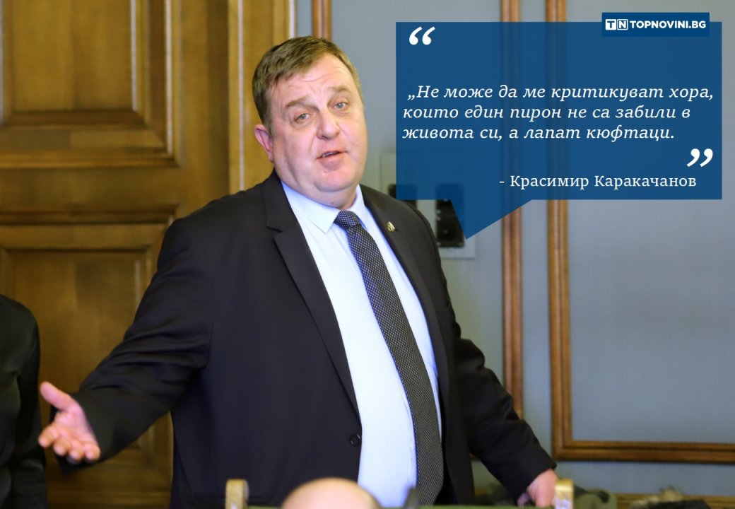 „Не може хора, които един пирон не са забили в живота си, а лапат кюфтаци в един скъп ресторант, да ме обвиняват и клеветят". Така военният министър Красимир Каракачанов се обърна към депутатите от "Атака" и въпросите им дали има нарушения при продажбата на военни имоти.