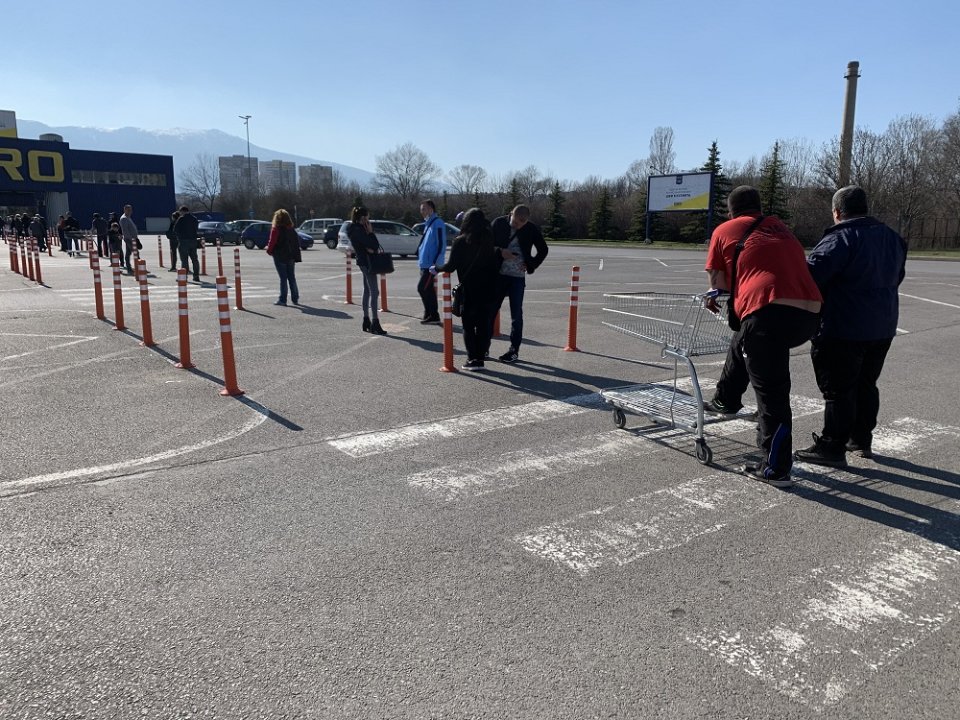 - От днес в супермаркетите се поставят стикери, които обозначават безопасното разстояние от 2 метра между клиентите.