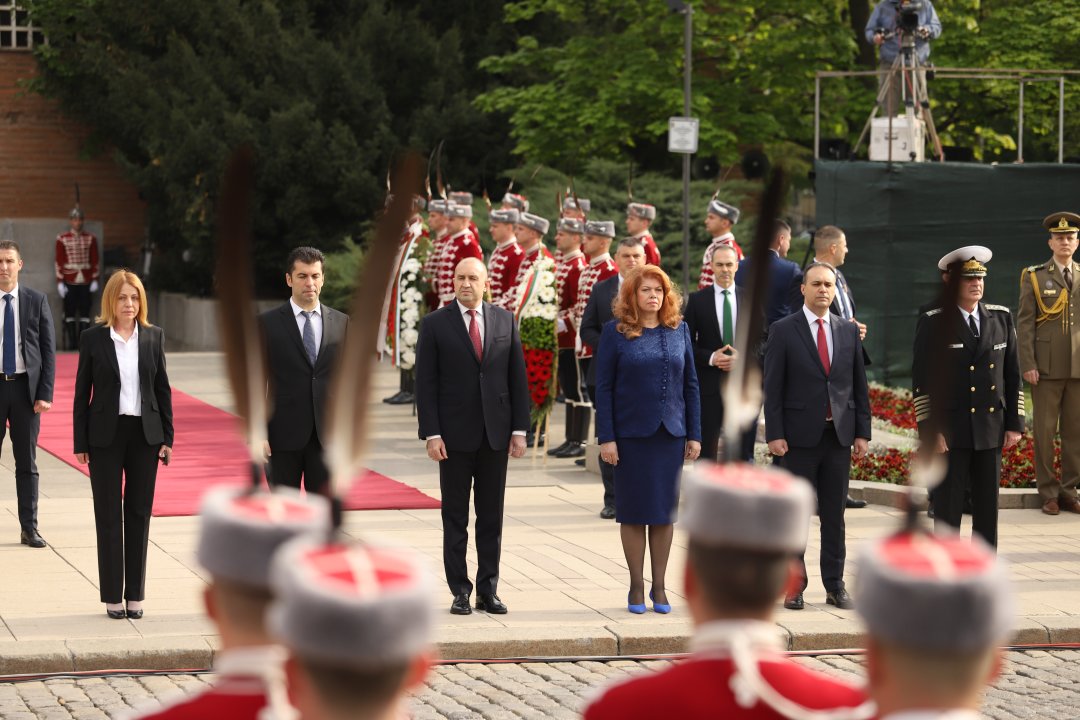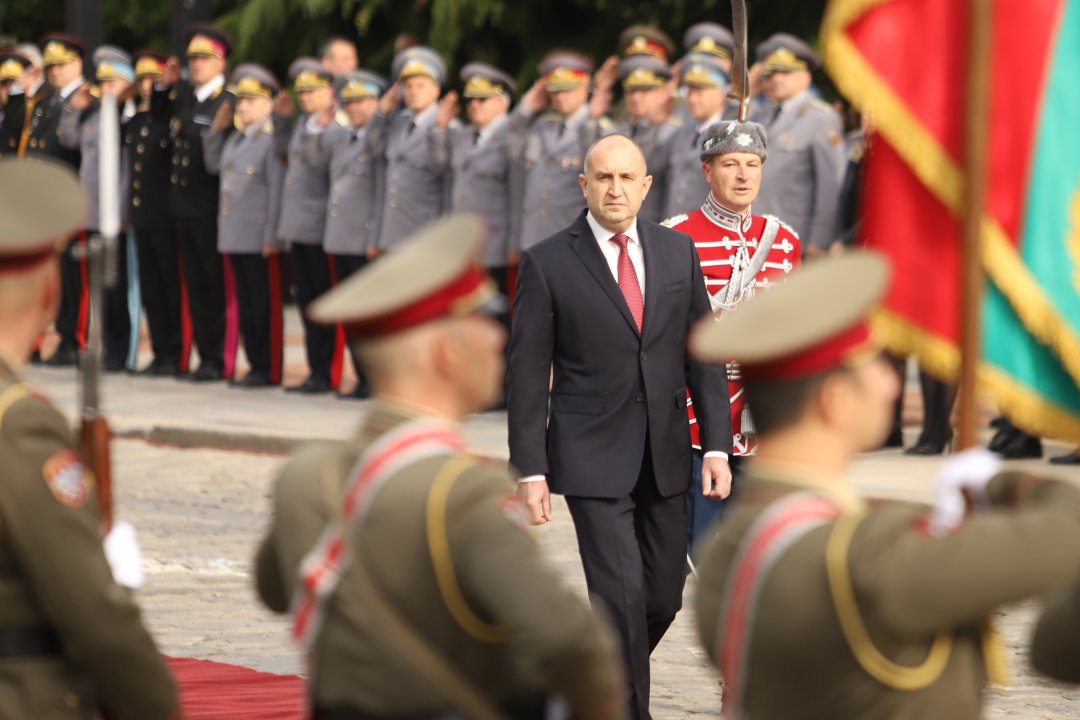 По-късно държавният глава Румен Радев и вицепрезидентът Илияна Йотова приеха в кабинетите си първите гости в рамките на Деня на отворените врати на президентската институция. До 16.00 часа посетителите ще имат възможност да разгледат сградата и да видят униформи на Националната гвардейска част, знамена светини на Българската армия, както и изложба със снимки, посветени на българските военнослужещи, на фотографа Вяра Йовева.