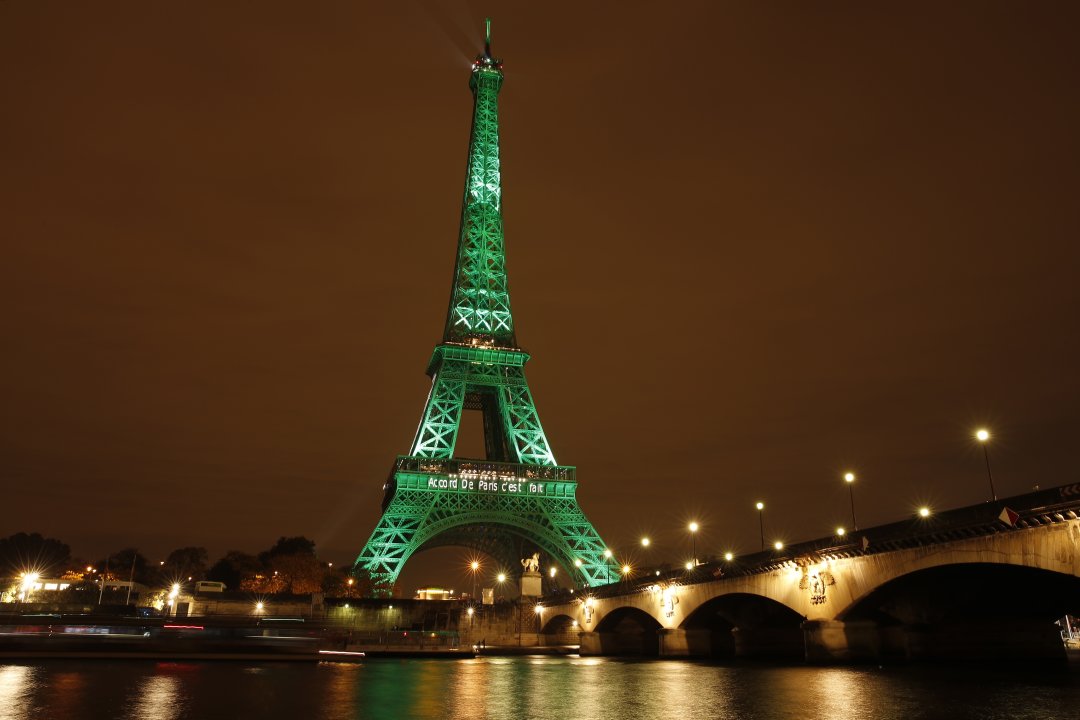 На Айфеловата кула бяха прожектирани лицата на хора, които се изправят срещу болестта всеки ден, защото служебните им задължения го изискват. До снимките имаше банер с надпис "Да се благодарим, че сте тук". Сред показаните имаше служители в старчески домове, учители, работници в магазини, доставчици и общински служители.