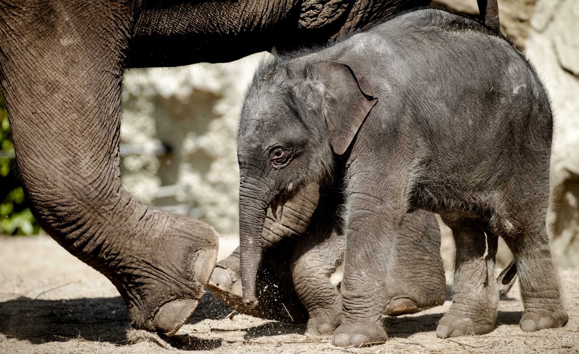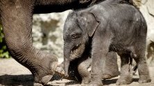 Две малки слончета бяха показани за първи път пред публика в зоопарка в прага. Едното е родено само преди четири дни и предизвика голям интерес сред посетителите.