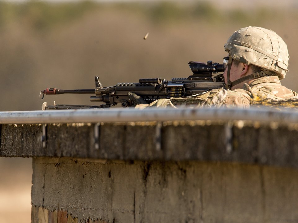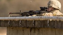 Стрелецът опитва да премине с висока скорост през портала на базата, но охраната успява да спусне бариерата и да го спре.