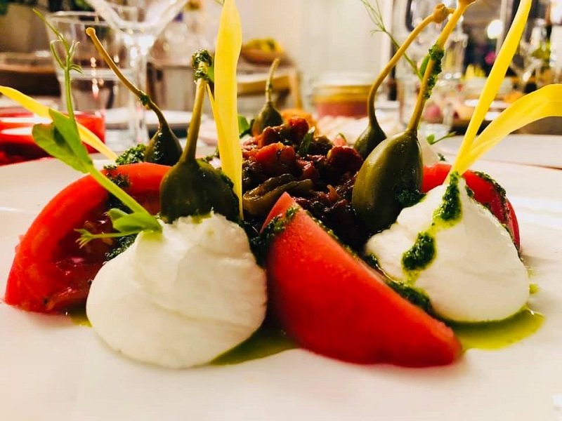 Ресторант Carne предлага сезонна кухня. През лятото и пролетта се набляга на леки храни – (риба, салати, морски дарове) подходящи за узо и бяло вино. Ресторантът изцяло залага на прясната храна.
