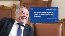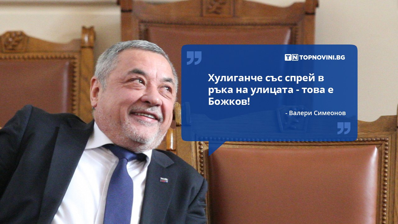 "Поведението на Васил Божков мога да го сравня с това на едно непораснало дете, невъзпитано хулиганче, което е набарало спрей с боя и пръска минувачите. Той блъфира през цялото време...Не мога да приема за сериозно поведението на човек с 18 обвинения". Така лидерът на НФСБ Валери Симеонов определи поведението на бизнесемена в изгнание Васил Божков.