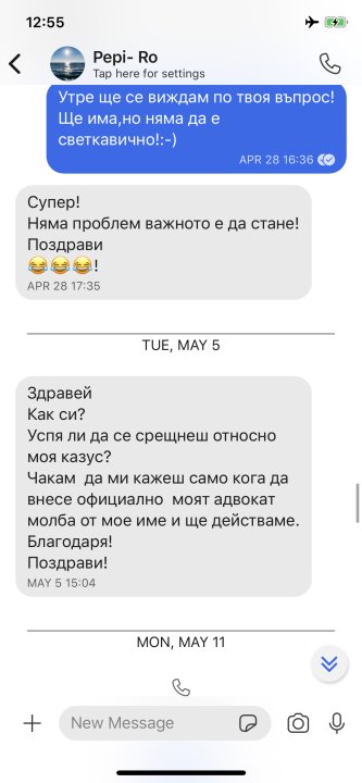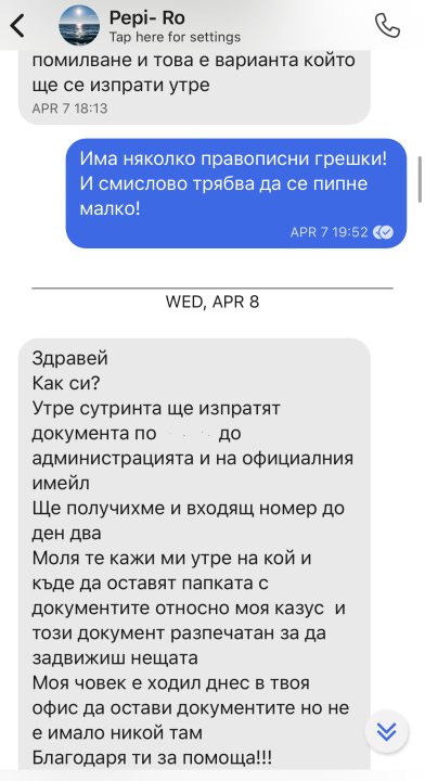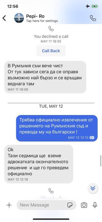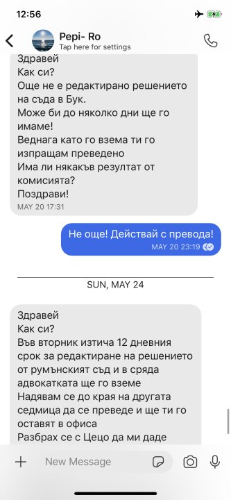 На 11 май 2020 г. “Pepi- Ro” изпраща на П.Б. снимка със съдържание на чужд език, касаещо решение на румънските съдебни власти.