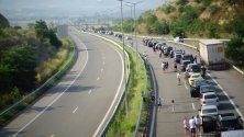 Засилено е присъствието на полицията и жандармерията по трасето на АМ "Тракия". Органите на реда организират подреждането на автомобилите и поетапното им пропускане към пункта.