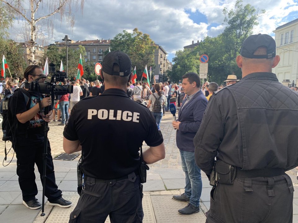 На протеста е и лидерът на ДСБ и съпредседател на "Демократична България" ген. Атанас Атанасов. Според него министър Маринов не е приел оставката на шефа на бургаската полиция по нареждане на Ахмед Доган.