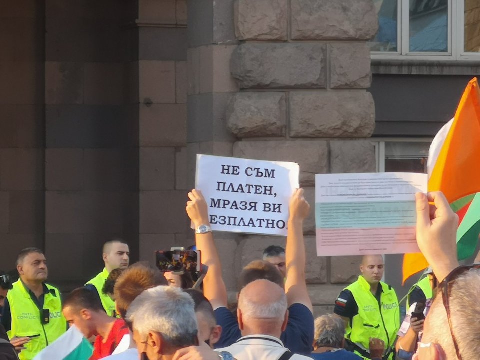 От площада недоволните са категорични, че няма да позволят да бъдат "купени" и подкупени, визирайки последните антикризисни мерки, гласувани днес от кабинета.