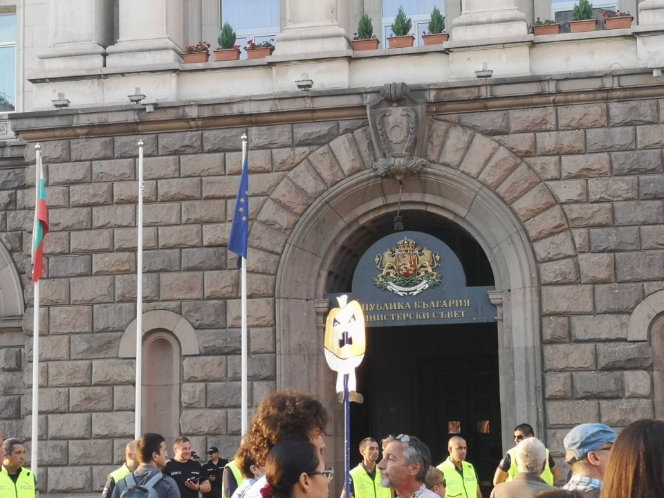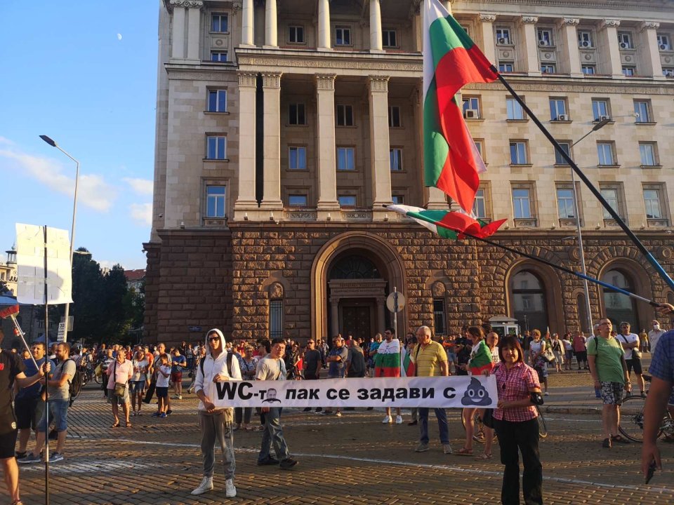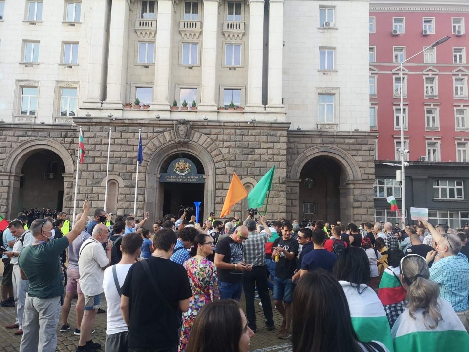 Към 19:50 часа протестиращите от президентството се пренесоха пред Министерския съвет. Така блокираха движението на Ларгото, а сградата на МС бе обстреляна тази вечер от зелени топчета за пейнтбол. Десетки протестиращи хвърляха от тях по фасадата. Веригата от полицаи отпред е плътна, а към момента няма провокации или ексцесии.