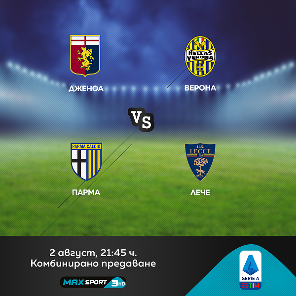 В неделя от 21.45 часа MAX Sport 3 ще направи феновете преки свидетели на битката за оцеляване, в която са замесени Лече и Дженоа. Генуезци имат една точка преднина и заемат спасителната 17-а позиция преди решаващия си домакински мач с Верона. По същото време Лече ще гони задължителна победа у дома срещу Парма и ще се надява на грешна стъпка на Дженоа. Двубоят Дженоа – Верона ще се излъчи преимуществено по MAX Sport 3, но камерите ще отвеждат феновете в реално време и на другия двубой при отбелязването на гол и при други любопитни ситуации.