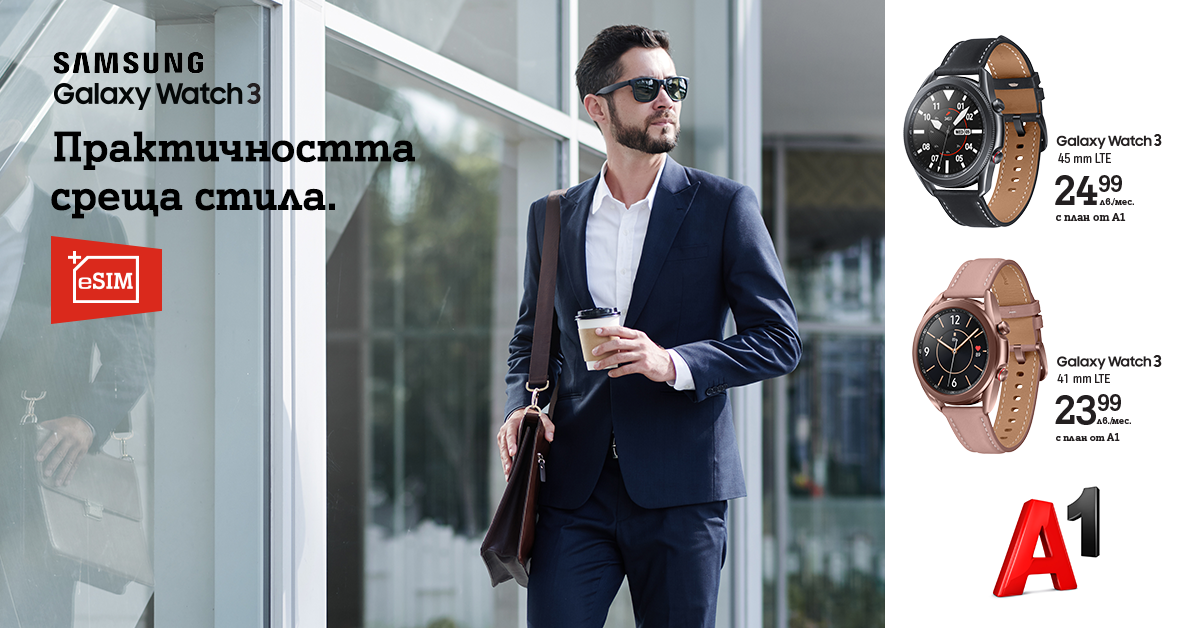 След като стана първият телеком в България, който предложи услугата еSIM на своите клиенти, А1 пуска на пазара смарт часовници, които също поддържат електронните SIM карти. Става дума за 4 устройства на Samsung – Galaxy Watch3 41mm; Galaxy Watch3 45mm; Smart Watch Active2 44mm, както и Smart Watch Active2 40mm. Първите два вече могат да бъдат закупени онлайн на А1.bg, както и в магазините на телекома, а устройствата от серията Active2 ще се присъединят към тях до края на август.