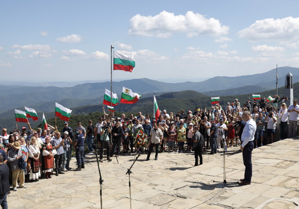 В словото си на историческия връх президентът заяви: "143 години България цяла гледа Шипка с преклонение. И днес хиляди изкачихте този върх, за да докажете, че достойнството стои по-високо от страха и забраните".