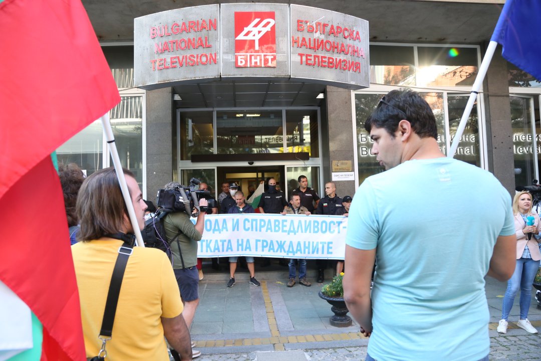 Тази сутрин сградата на БНТ беше блокирана от протестиращи, като акцията беше четвърта от поредицата "блокада-изненада".