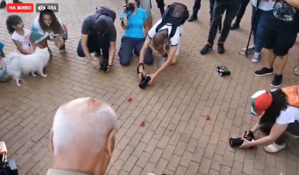 Проявата е огласена от скандирания „Оставка, Радев“, „Изчезвайте от Орлов мост“, „Вън катуните от София“, „Яйцата на пазара, не по сградите“.