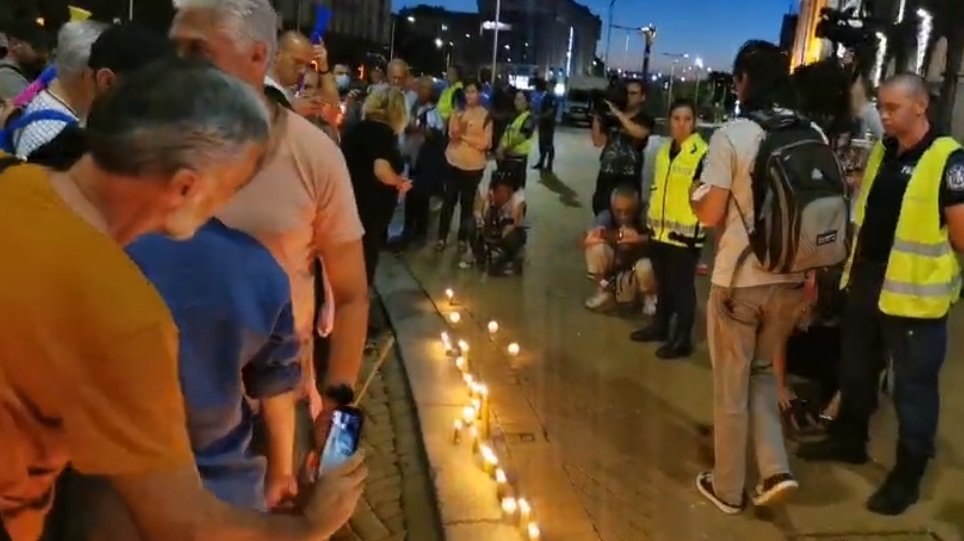 На 45-тия ден от антиправителствените протести недоволстващите подариха нов „автопарк“ на премиера Бойко Борисов и запалиха свещи пред Министерския съвет с идеята да прогонят тъмнината, дошла с това правителство.