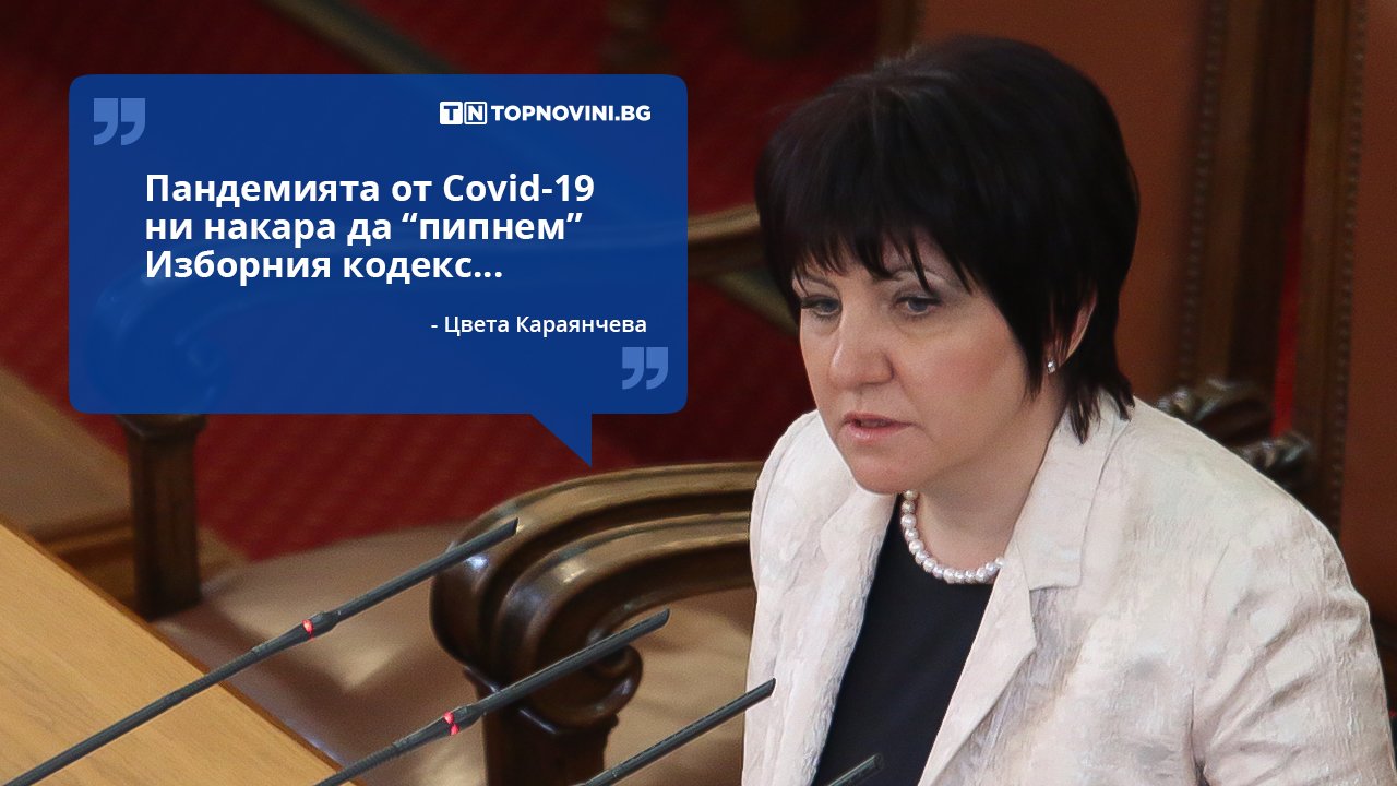 Попитана защо се ремонтира Изборният кодекс въпреки препоръките на Венецианската комисия това да не се прави преди избори тя обясни:„Пандемията от Covid-19 беше едно от обстоятелствата, което ни накара "да пипнем" Изборния кодекс, за да вкараме хартиената бюлетина“.