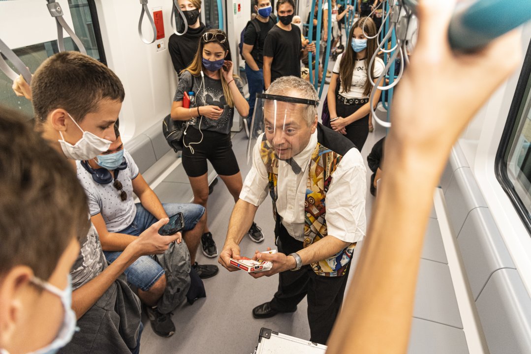В минутите след 12:00 часа пътниците по новата линия между Красно село и Хаджи Димитър станаха част от шоуто SOUND UNDERGROUND.