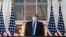 Тръмп се върна в Белия дом и демонстративно свали маската