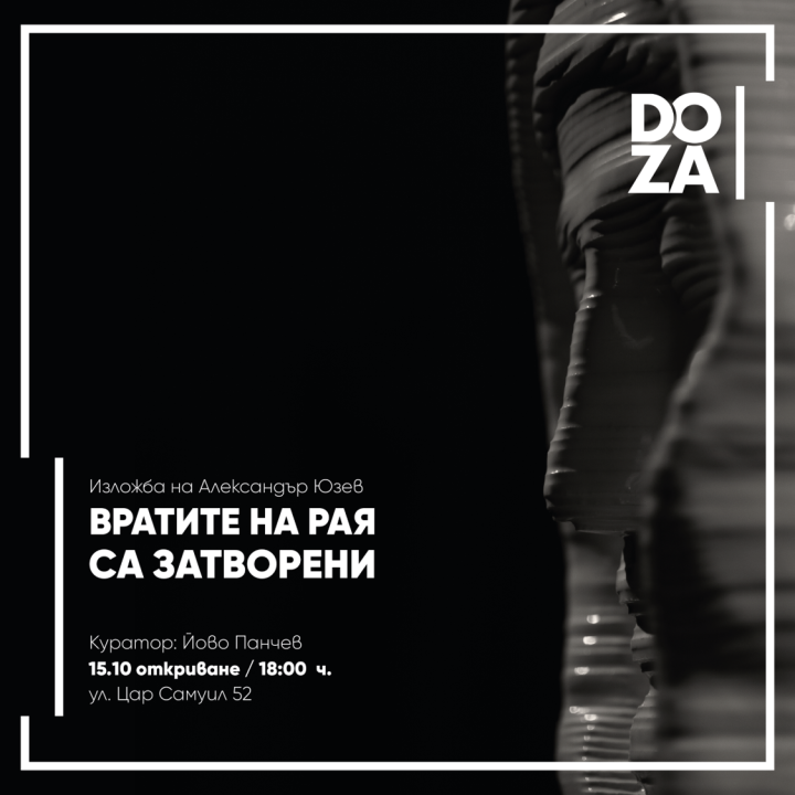 Изложбата „Вратите на рая са затворени“ на Александър Юзев ще бъде открита на 15 октомври в Галерия „Доза“.
