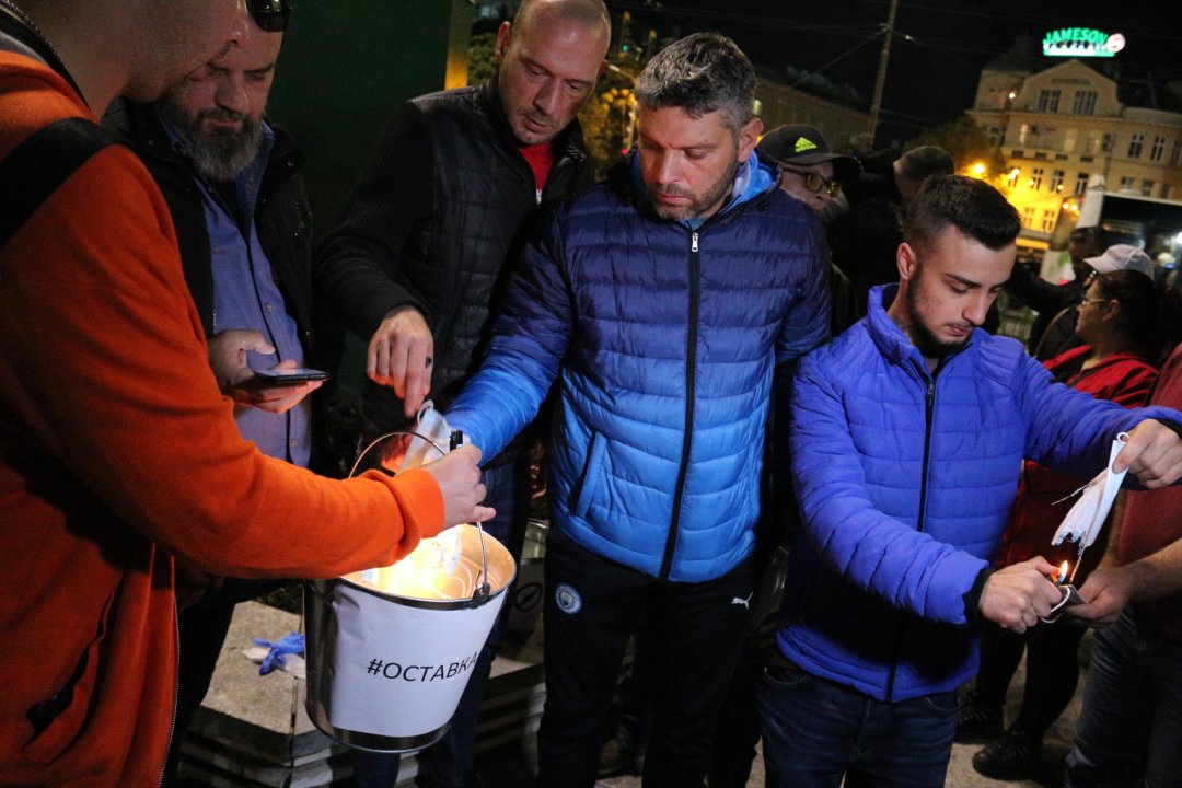 Граждани блокираха за кратко столичния "Орлов мост" в 105-ия ден на антиправителствени демонстрации и запалиха маски в знак на протест срещу новите мерки за носене на предпазни средства на открито.