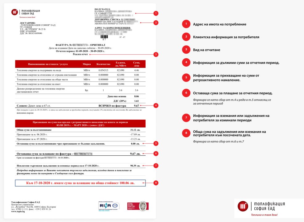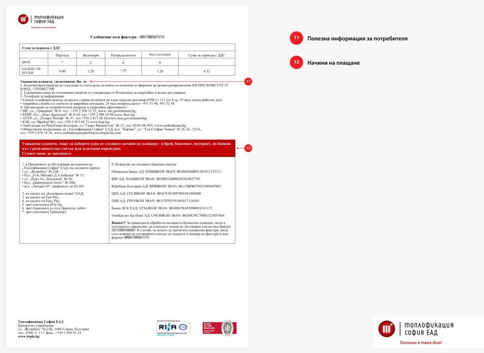 Вече всички потребители ще могат да намерят своята фактура и разяснителната информация към нея на сайта на дружеството. Промените в оформлението са приложени за различните форми на отчитане и заплащане на използваната топлинна енергия – прогнозно потребление, реален месечен